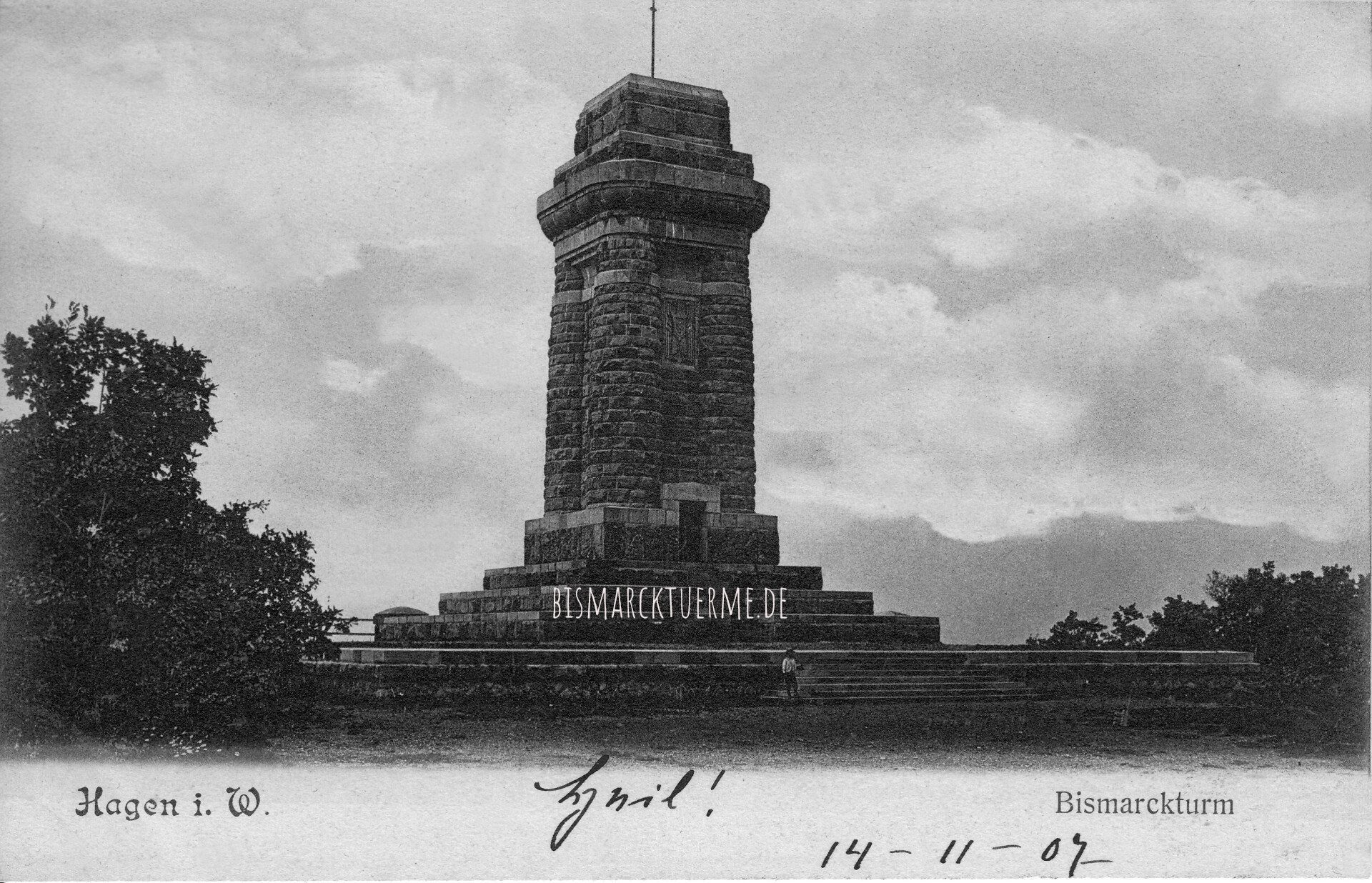 Der Plan zum Bau des Hagener Bismarckturmes entstand durch eine Initiative der Hagener Ortsgruppe des Alldeutschen Verbandes am 01. Februar 1899 unter Vorsitz von Prof. Dr. phil. August Haake. Bereits am 02.02.1899 wurde ein Aufruf in den Zeitungen veröffentlicht und um Spenden gebeten. Dieser Aufruf wurde ebenfalls an zahlreiche Hagener Persönlichkeiten versandt.