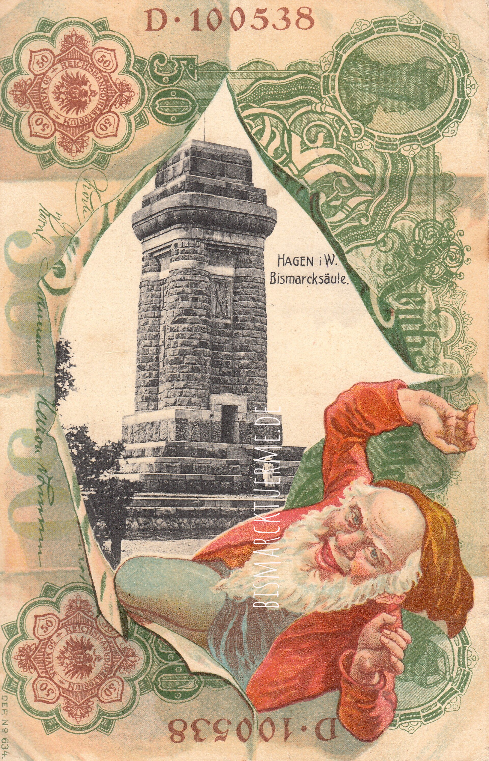 Am 16.02.1899 wurde ein "Ausschuss zur Errichtung einer Bismarcksäule" unter Vorsitz von Prof. Haake gebildet, welcher mit den Vorarbeiten begann. Durch großzügige Spenden der Hagener Bürger konnten 60.000 Mark aufgebracht werden.