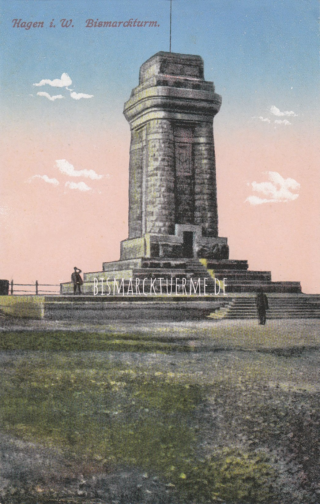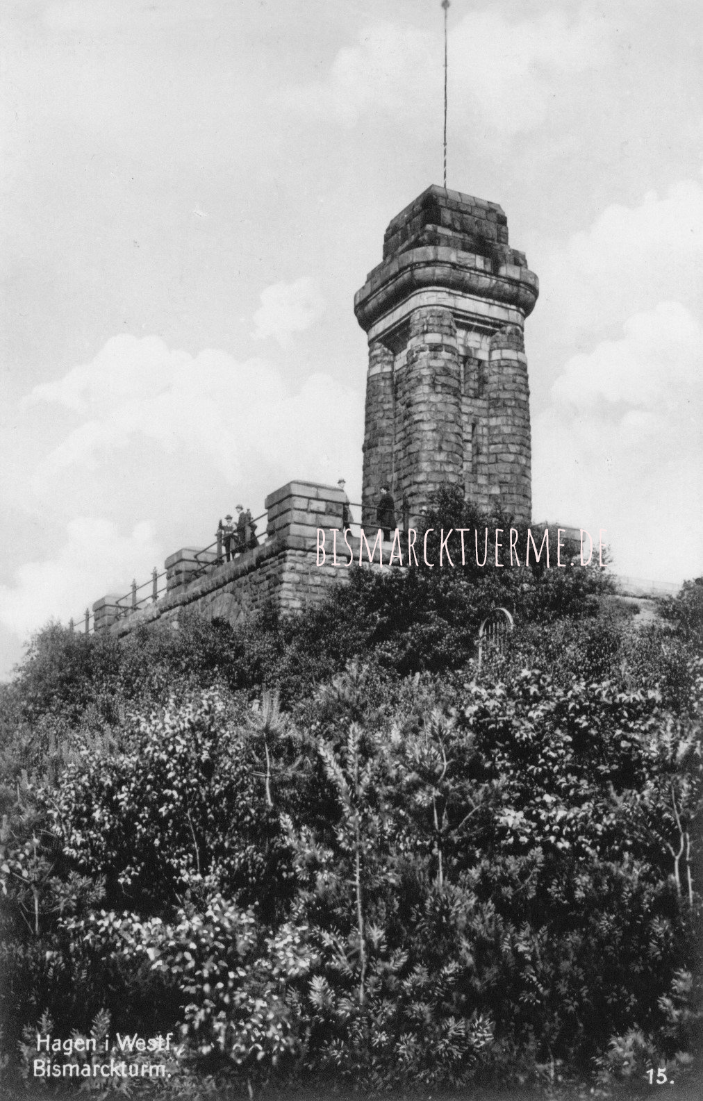 Zum 100. Geburtstag von Otto von Bismarck am 01.04.1915 legte die Hagener Ortsgruppe einen Kranz am Bismarckturm nieder und ließ den Turm abends bengalisch beleuchten. Aufgrund des Kriegsbeginns konnte am 01.04.1916 keine Bismarckfeier und keine Beleuchtung des Turmes durchgeführt werden.