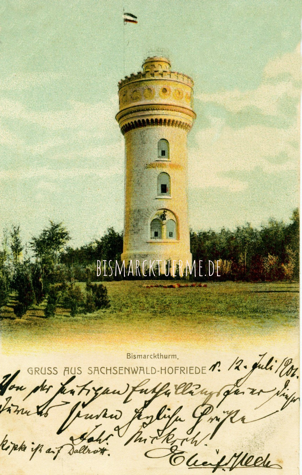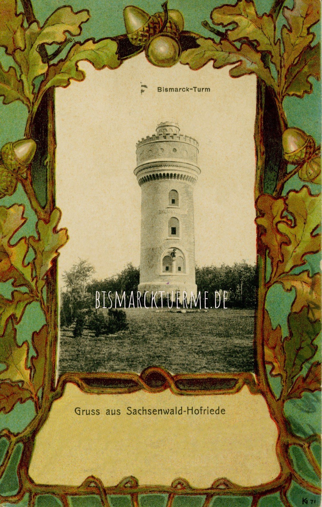 - von Bismarck, Valentin: Bismarck-Feuersäulen u. Türme (unveröffentlichtes Manuskript); Nr. 46 "Bismarck-Turm zu Sachsenwald-Hofriede", 1900-1915, 1937 (im Archiv der Burschenschaft Alemannia, Bonn)
