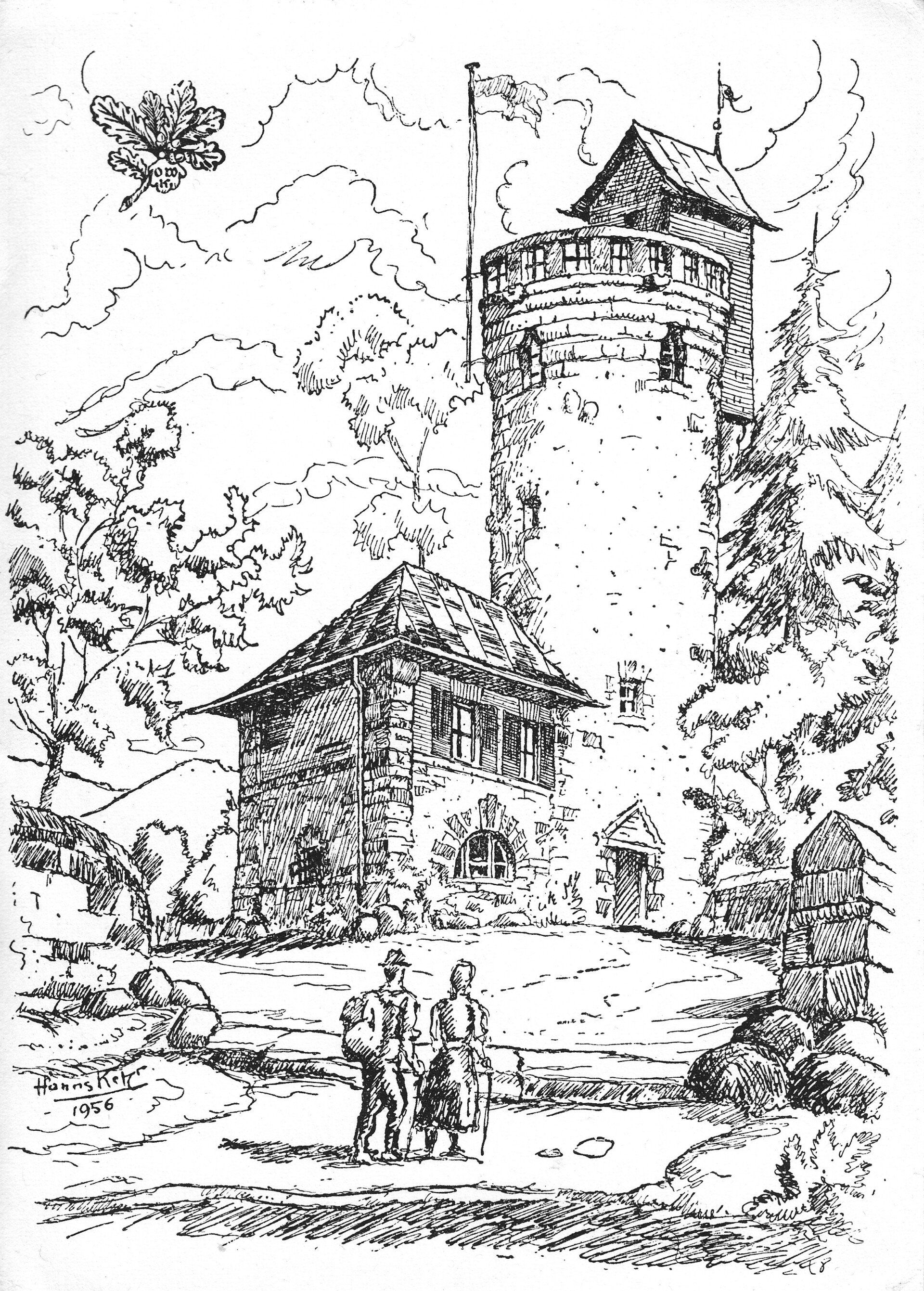In den Jahr 1956 wurde die Aussichtsterrasse zugemauert und auf der Ost- und Westseite jeweils mit zwei Fenstern versehen. Der Anbau wurde zum Wanderheim mit Klubzimmer umgebaut. Das Bismarck-Medaillon wurde im Innern über der Wanderer-Heimtür angebracht.
