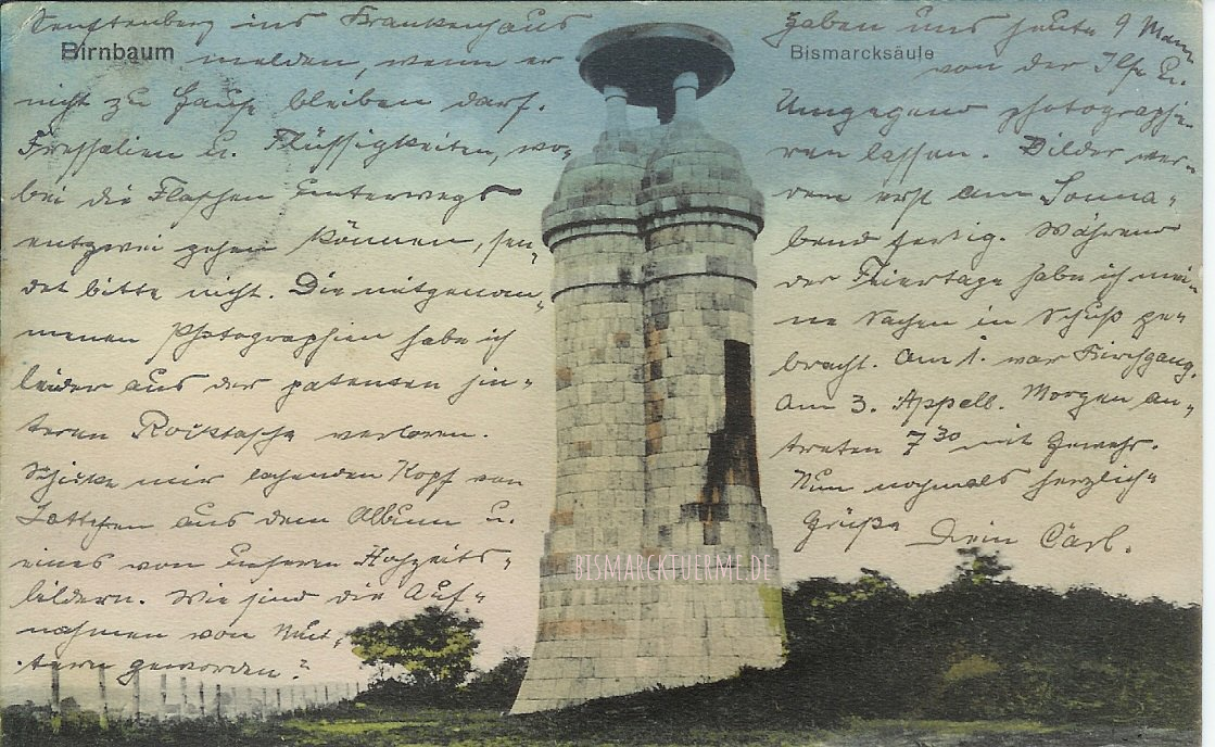 Ansichtskartenmotiv Bismarcksäule Birnbaum 1911