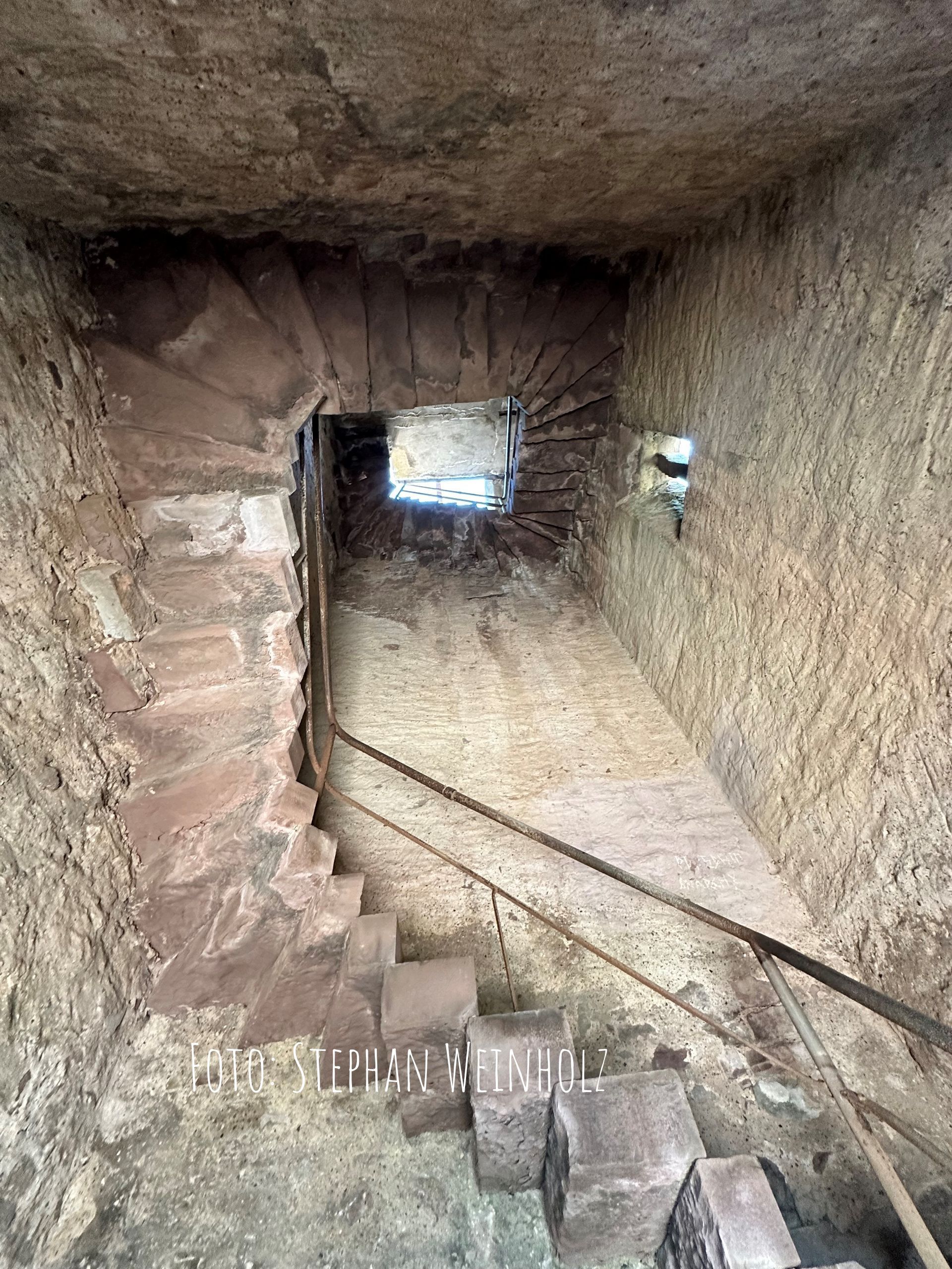 Die Aussichtsplattform ist noch heute über eine Innentreppe (linksdrehend) mit 58 Steinstufen erreichbar.