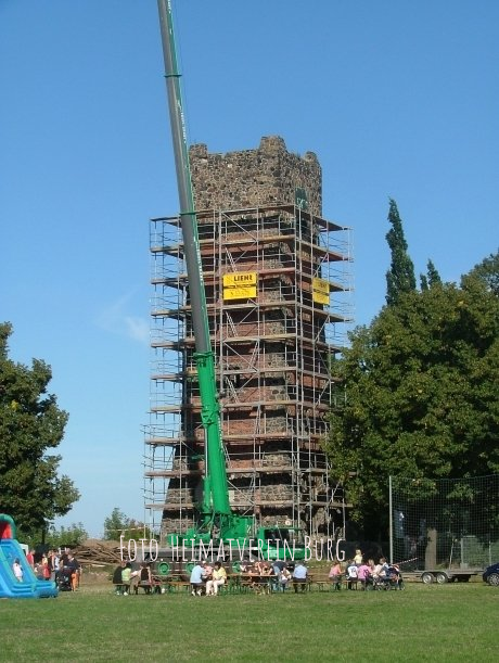 Am Tag des offenen Denkmals 2006 war das Bauwerk zum ersten Mal seit Jahrzehnten für die Öffentlichkeit zugänglich (bis zur ersten Etage in 10 m Höhe). Der Heimatverein Burg sammelte bis September 2006 insgesamt 20.000 EUR Spenden. Lotto-Toto spendete 30.000 EUR, das Land Sachsen-Anhalt beteiligte sich mit 40.000 EUR an der Sanierung.