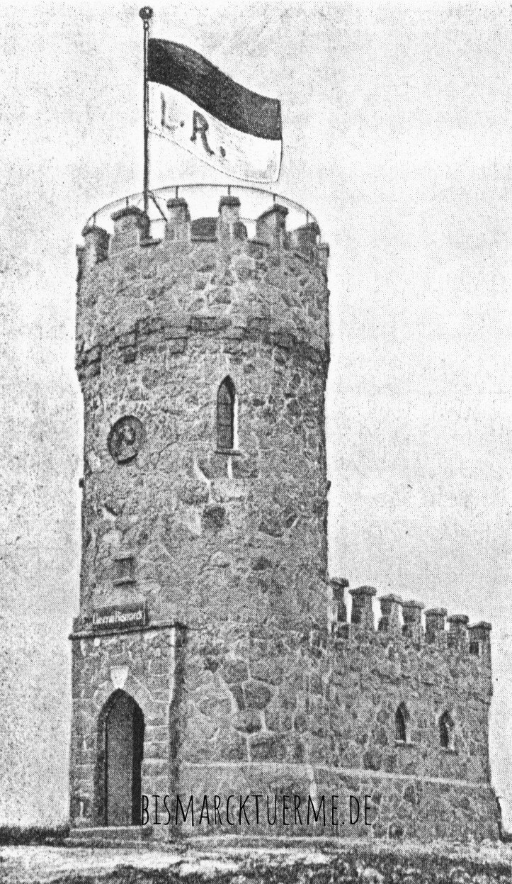 Als Vorbild für diesen runden Aussichtsturm mit Befeuerungsmöglichkeit mit zinnenbekröntem Anbau diente der am 01.04.1899 eingeweihte Bismarckturm in Rudolstadt/Thüringen.