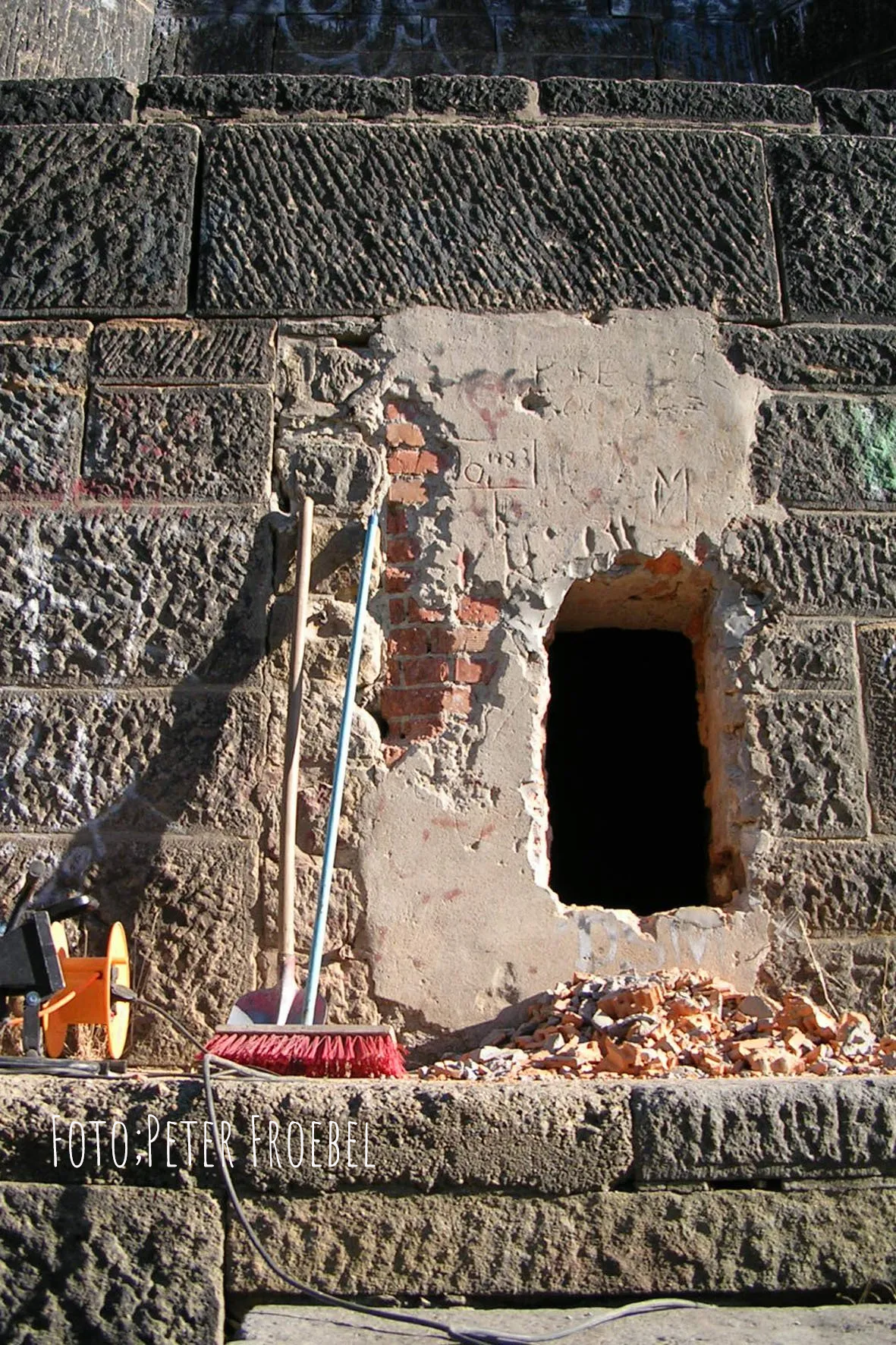 Am Unterbau, links vom Eingang zur Ecke hin, wurde eine neu angebrachte Sandsteintafel enthüllt: