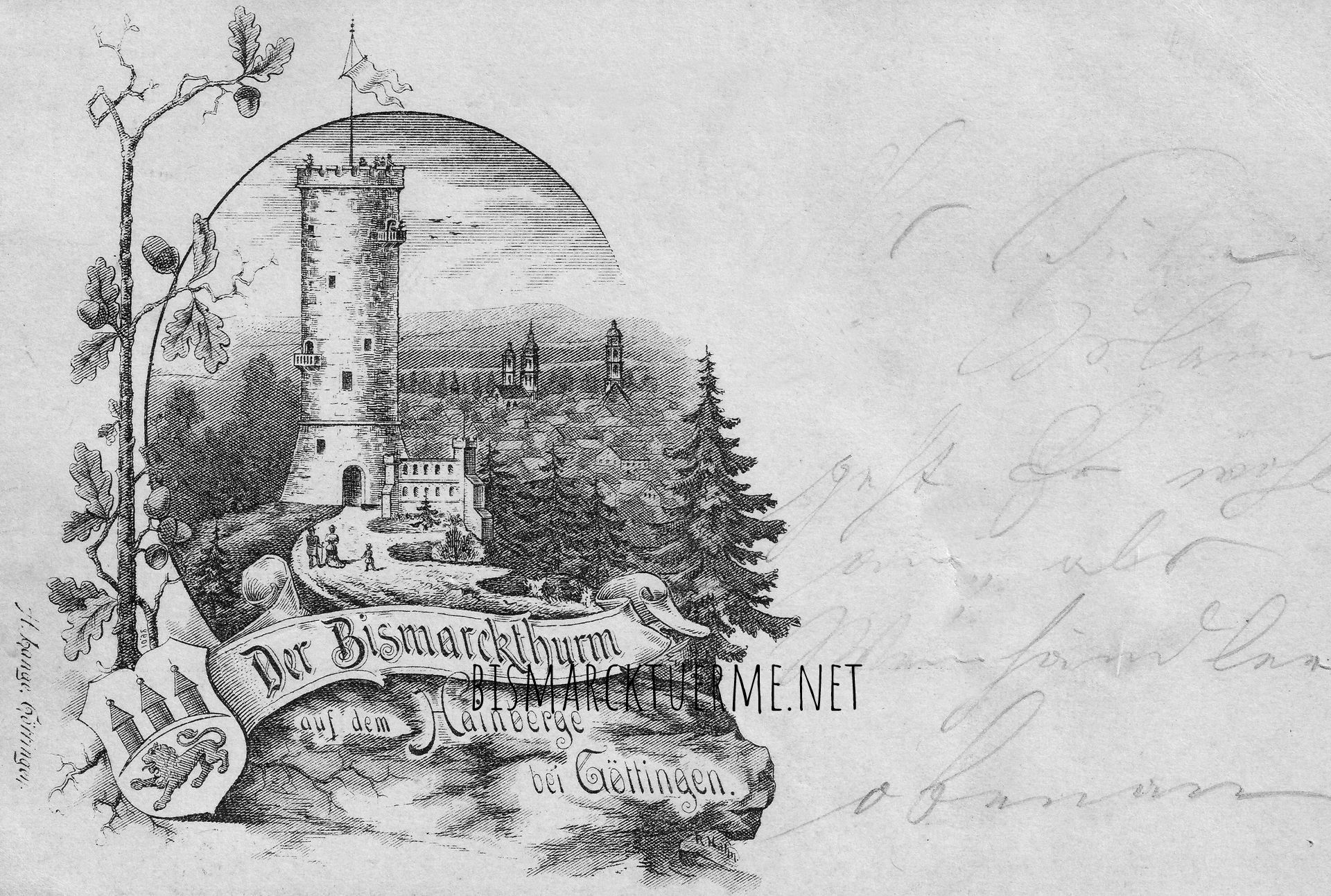 Bismarck hatte Göttingen am 29.07.1895 bei seinem Zwischenhalt mit der Bahn (Ziel: Bad Kissingen) am Göttinger Bahnhof in guter Erinnerung, was er mehreren Tausend Bismarck-Anhängern, die ihn dort begeistert erwarteten, vor Ort berichtete: "Vor sechzig Jahren bin ich in die Thore von Göttingen eingezogen als flotter, frischer Student, und ich muß sagen, von allen den Orten, denen ich meine Bildung verdanke, ist mir Göttingen noch der liebste, da so schöne Jugenderinnerungen mich an diese Stadt binden."