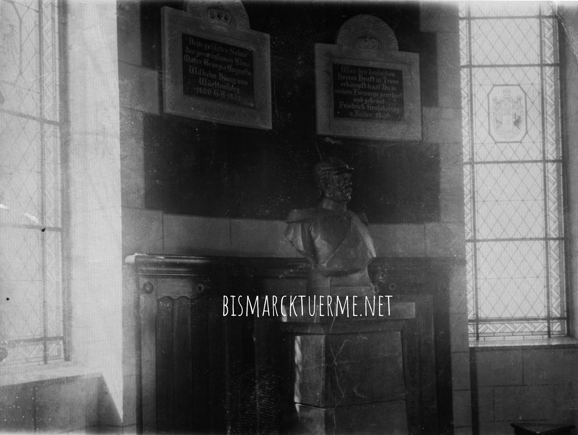 In der Generalversammlung des Turmbau-Vereins am 19.03.1897 wurde beschlossen, die bereits vorhandene Bismarckbüste gegen eine größere Büste auszutauschen. Auf Mitgliedsbeiträge im Jahr 1897 sollte verzichtet werden.