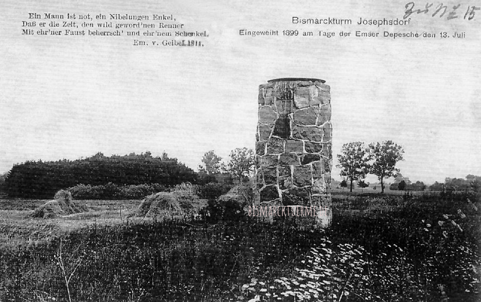- von Bismarck, Valentin: Bismarck-Feuersäulen u. Türme (unveröffentlichtes Manuskript); Nr. 15 "Bismarck-Feuersäule zu Josephsdorf, Kreis Culm/Westpr.", 1900 - 1915, 1937 (im Archiv der Burschenschaft Alemannia, Bonn)