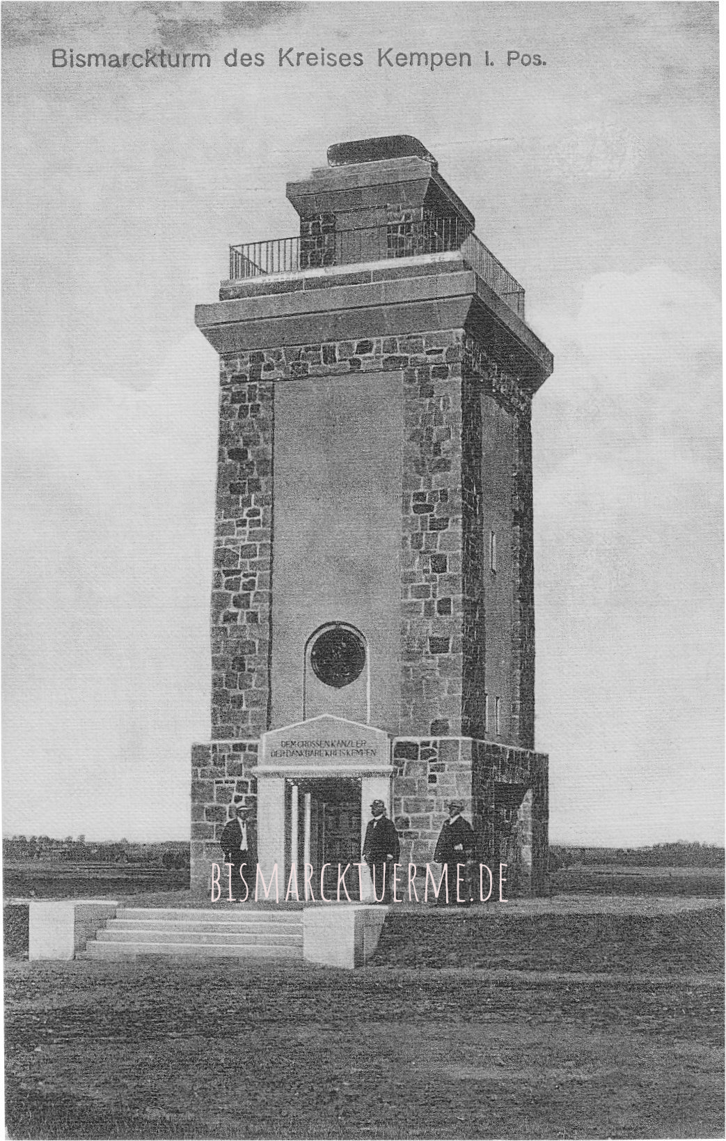 Der Bismarckturm in Kempen wurde auf einem etwa 1 m hohen Erdplateau errichtet. Das Plateau war auf der Eingangsseite des Turmes über eine Treppe mit fünf Stufen erreichbar.