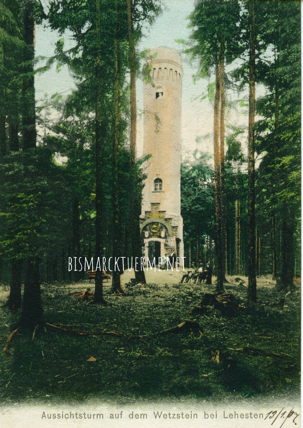 Der Vorsitzende des Thüringerwald-Zweigvereins in Lehesten, Hotelier Ludwig Munzer, regte den Bau dieses Bismarckturmes im Oktober 1899 auf dem 793 m hohen Wetzstein an. Der Vorsitzende strebte einen Neubau des alten Wetzsteinturmes an, der diesmal in Eisen ausgeführt werden sollte. Die Baukosten wurden auf 5.000–6.000 Mark veranschlagt.