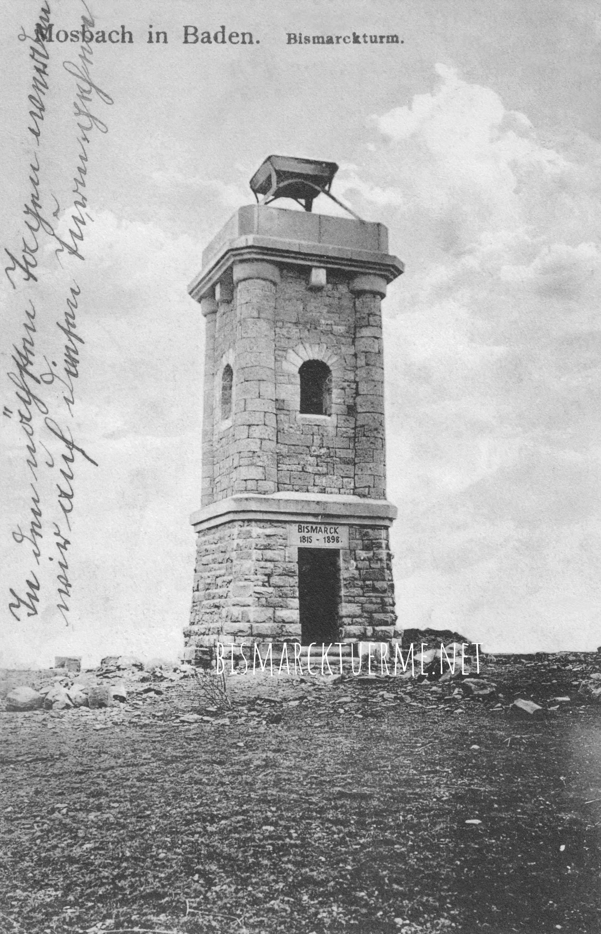 Am 01.04.1905 sowie am 02.04.1905 ab 15:30 Uhr wurde die Einweihung des Bismarckturmes in Mosbach, organisiert vom Turnverein, gefeiert. Im Rahmen der Feierlichkeiten bei großer Beteilung der Bevölkerung wurde das Bauwerk an die Stadt Mosbach übergeben. Die Festrede hielt Gymnasiumsvorstand Professor Richter.