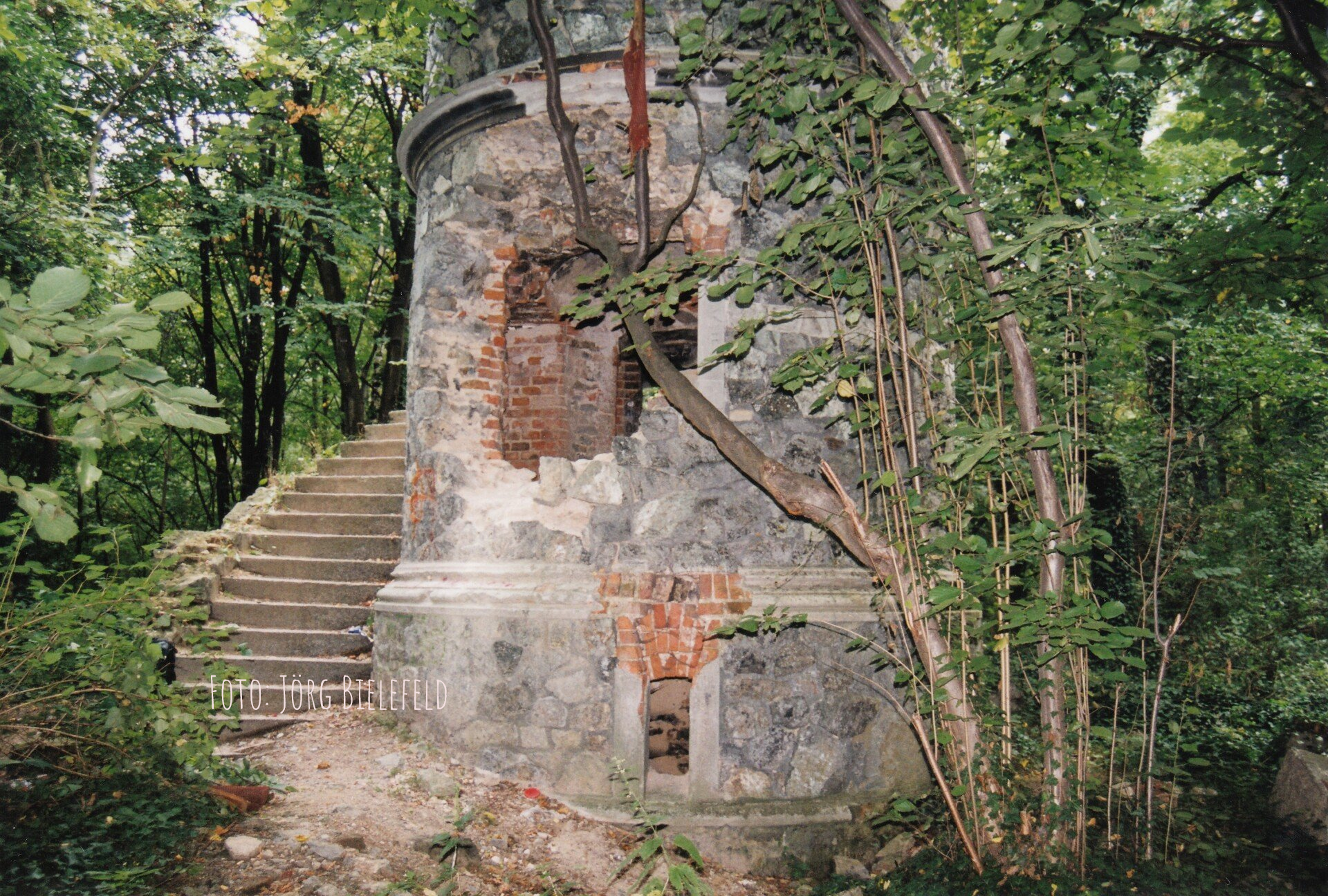 Der Turm war im Mai 1992 stark sanierungsbedürftig vorhanden. Alle Hinweise auf Bismarck und die Marmortafeln waren entfernt worden, der hölzerne Pavillon existierte nicht mehr.