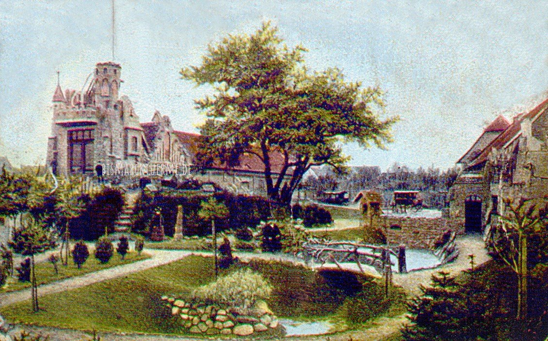 Der Bismarck-Verehrer und Baumeister Gustav Hermann Tautz aus Radefeld (seit 1999 ein Stadtteil von Schkeuditz) plante seit Oktober 1901, in der eigens neu angelegten Parkanlage auf der Anhöhe neben der Burgruine einen Bismarckturm zu errichten.