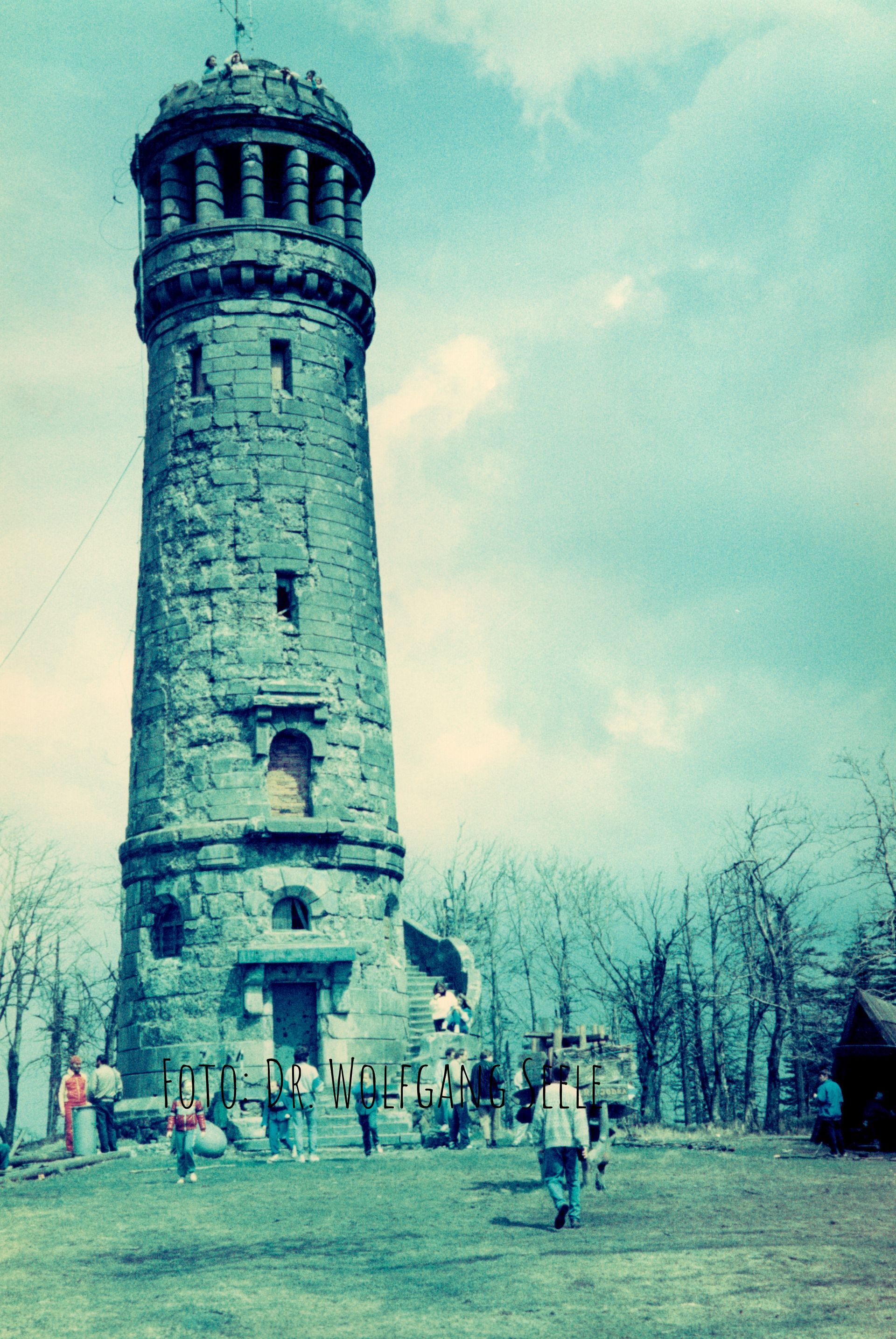 Der sanierungsbedürftige Turm wurde im Mai 1992 von Funkamateuren benutzt. Die Treppenstufen zur Gedenkhalle und die seitlich begrenzenden Kugeln waren beschädigt. Die Fenster der Halle waren nicht mehr vorhanden und mit Holzlatten von innen vernagelt. Der Austritt der oberen Halle war vermauert.