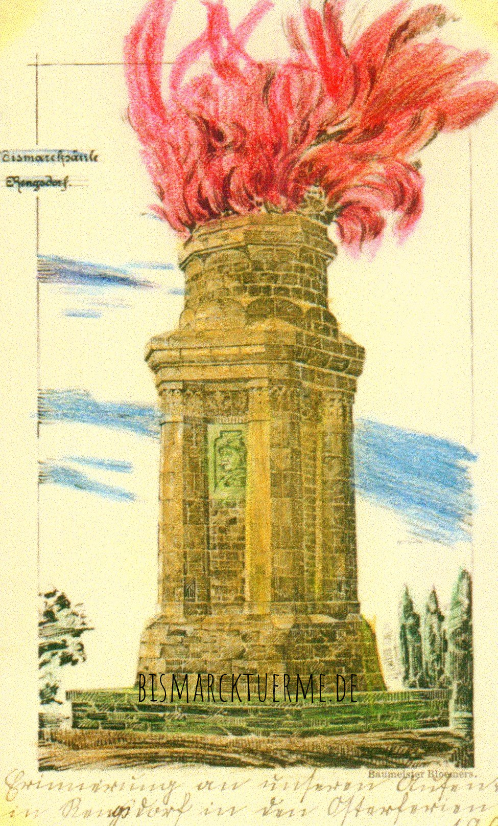 Hans Bloemers fertigte am 20.12.1901 eine Zeichnung mit einem Entwurf für die geplante Bismarcksäule an. Der Kostenvoranschlag belief sich auf insgesamt 14.000 Mark.