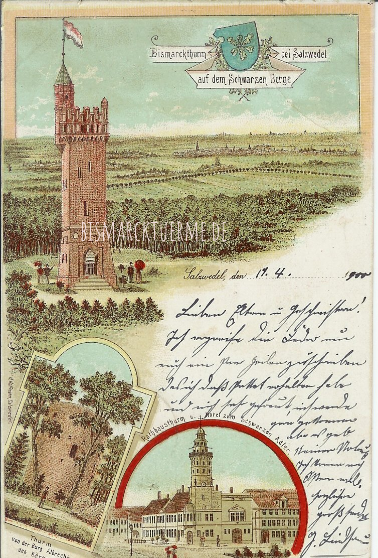 Auf dem Schwarzen Berge (76 m über NN), 4 km südwestlich der Stadt Salzwedel, wurde in den Jahren 1899 und 1900 ein Bismarckturm im altmärkischen Baustil errichtet.