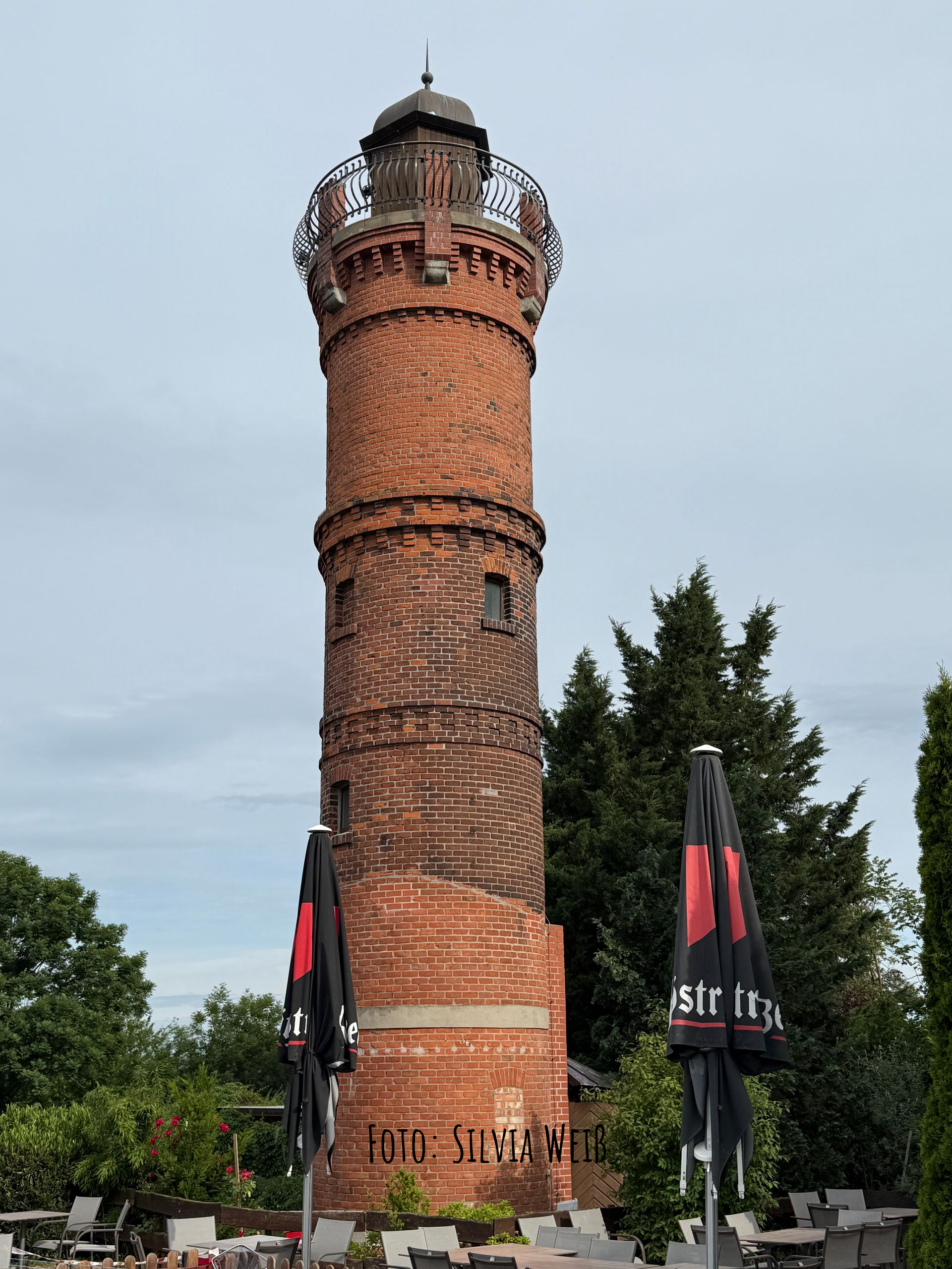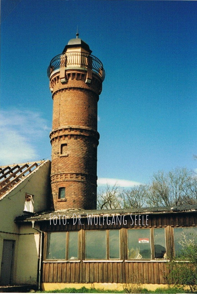 Der aus Backsteinen gebaute Aussichtsturm ohne Befeuerungseinrichtung mit rundem Grundriss war ursprünglich 10 m hoch und grenzte direkt an das Wirtschaftsgebäude an. Das Bauwerk war mit einigen Verzierungsringen versehen und schloss nach oben mit einem Aufbau mit Spitzdach ab. Das Turmmauerwerk hatte bis zu einer Höhe von 8 m eine Stärke von 0,38 m, darüber 0,25 m. Die Innentreppe war aus Zementbeton gefertigt.