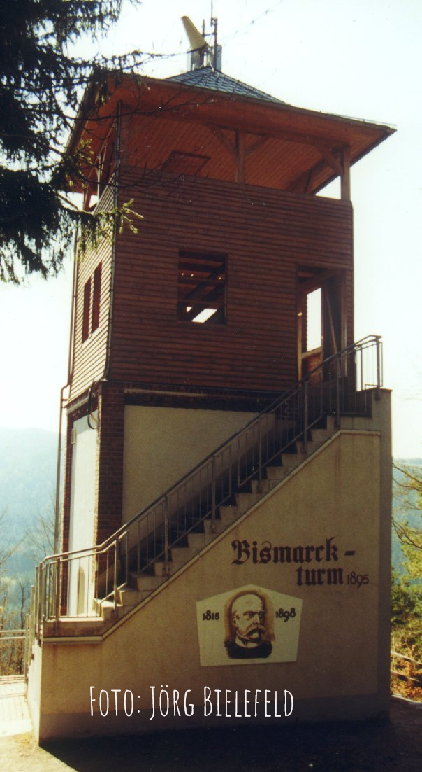 Am 11.08.1895 wurde der Berg samt Aussichtsturm (in Form einer Schutzhütte) als „Fürst Bismarck-Höhe eingeweiht.