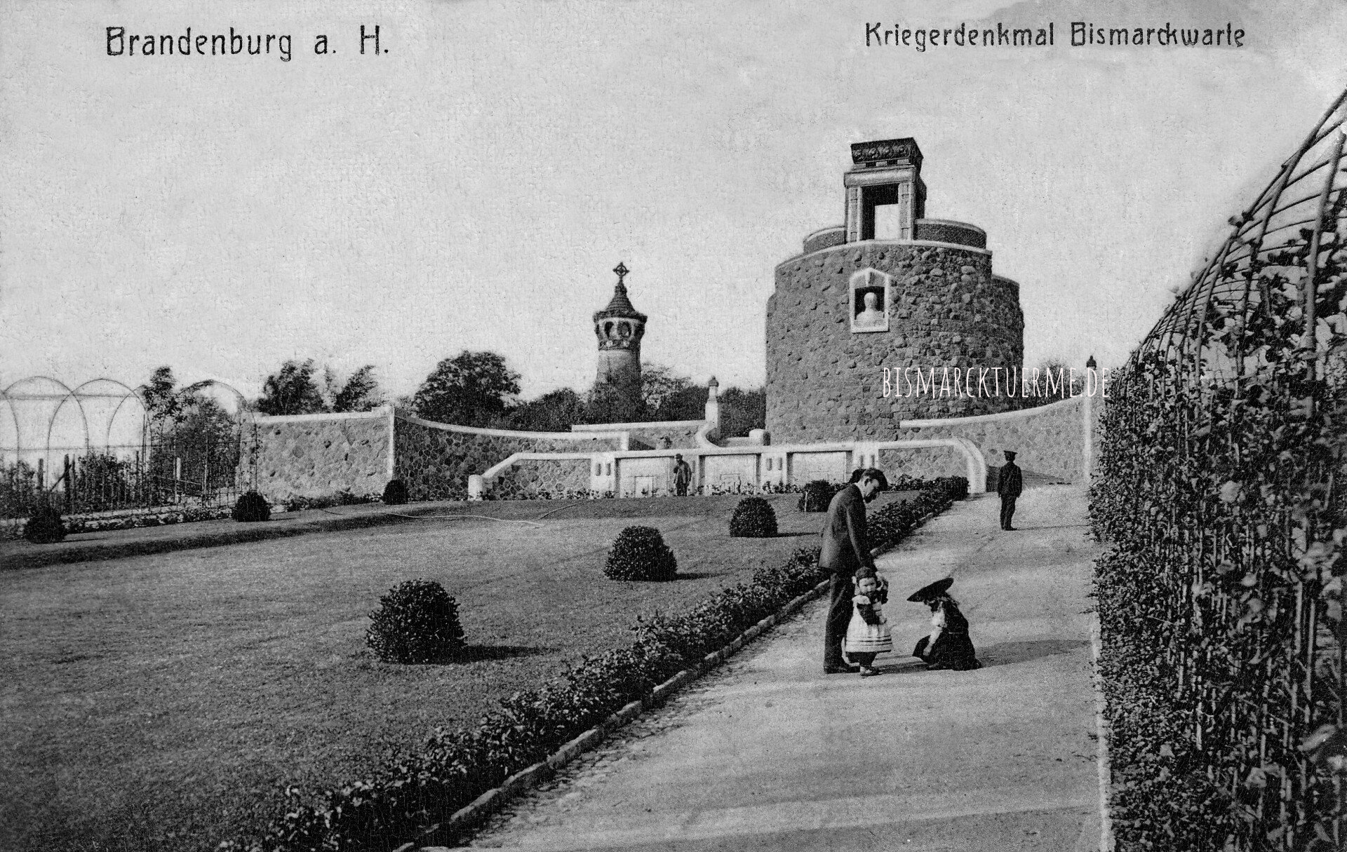 Bereits im Jahr 1874 wurde auf dem Marienberg in Brandenburg ein neogotischer Aussichtsturm zur Ehre der Gefallenen der Kriege 1864-1871 nach einem Entwurf von Hubert Stier errichtet (das Kriegerdenkmal wurde im März 1960 vollständig abgebrochen).