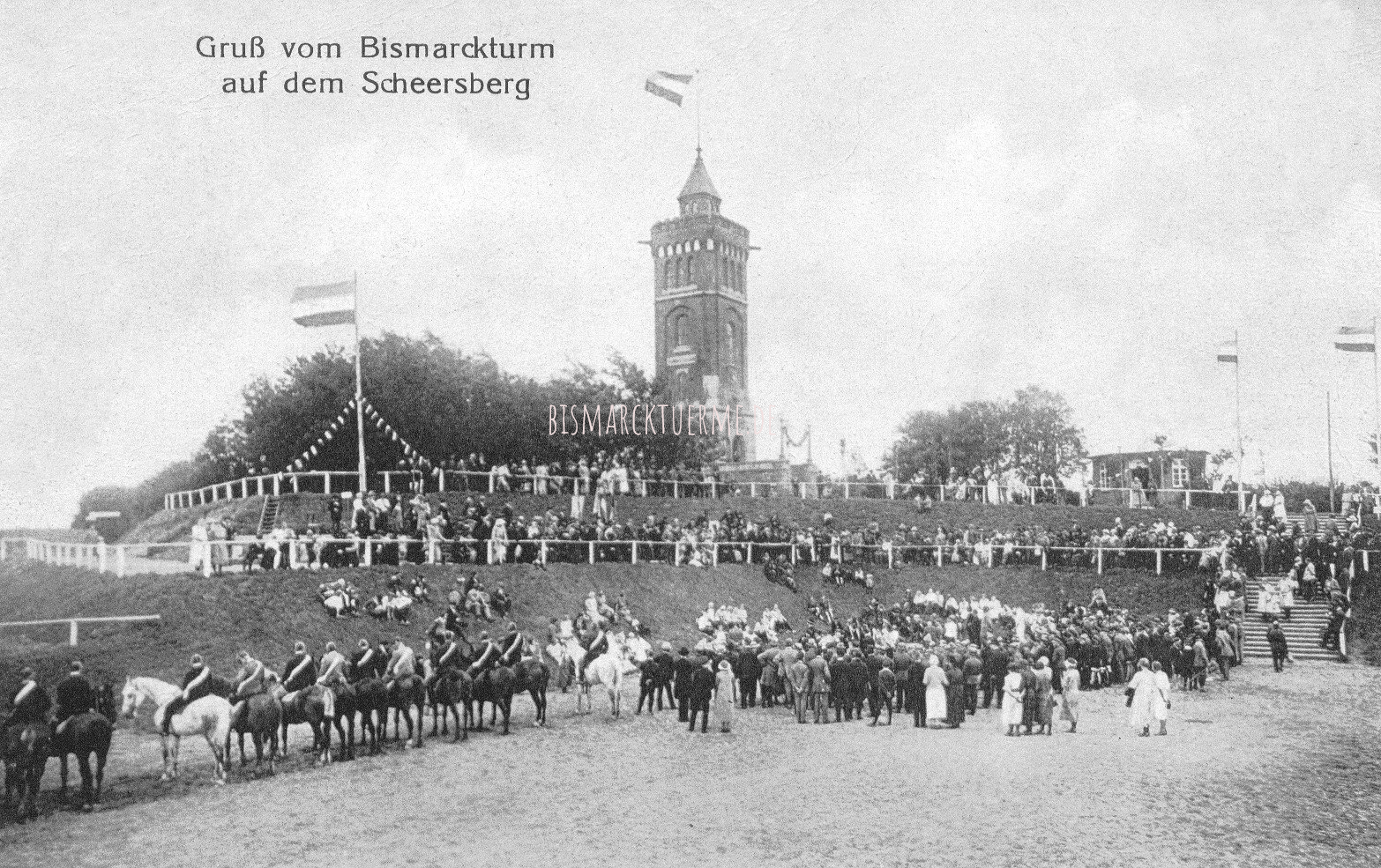 Am 02.06.1899 meldeten die dreizehn Männer in der Presse (Schlei-Bote) "eine Aufforderung zur Errichtung eines Bismarck-Thurmes auf dem schönsten Aussichtspunkte Angels, dem Scheersberge".