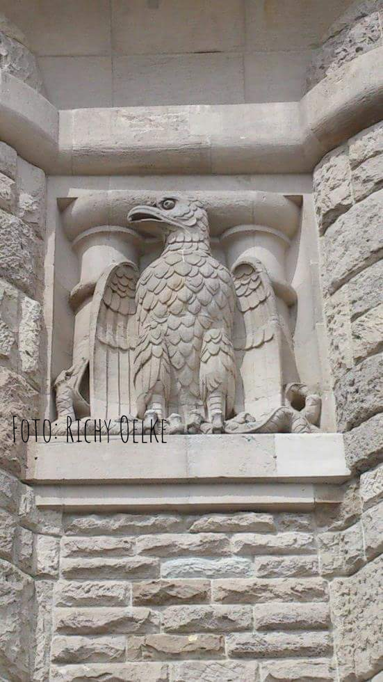 Am Säulenschaft der Stadtseite (Südseite) wurde ein steinernes Reichadlerrelief angebracht. Am Sockel unten wurde die Inschrift