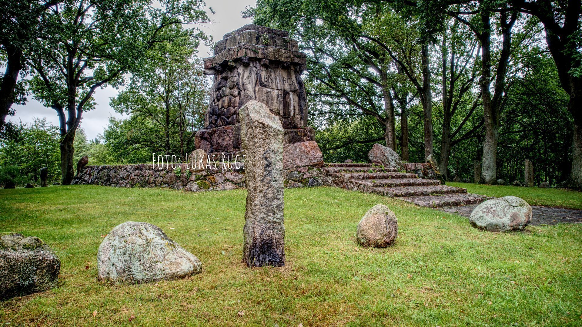 Unterhalb dieser Inschrift wurden auf einem anderen Findling das Bismarck-Wappen und die Jahreszahl