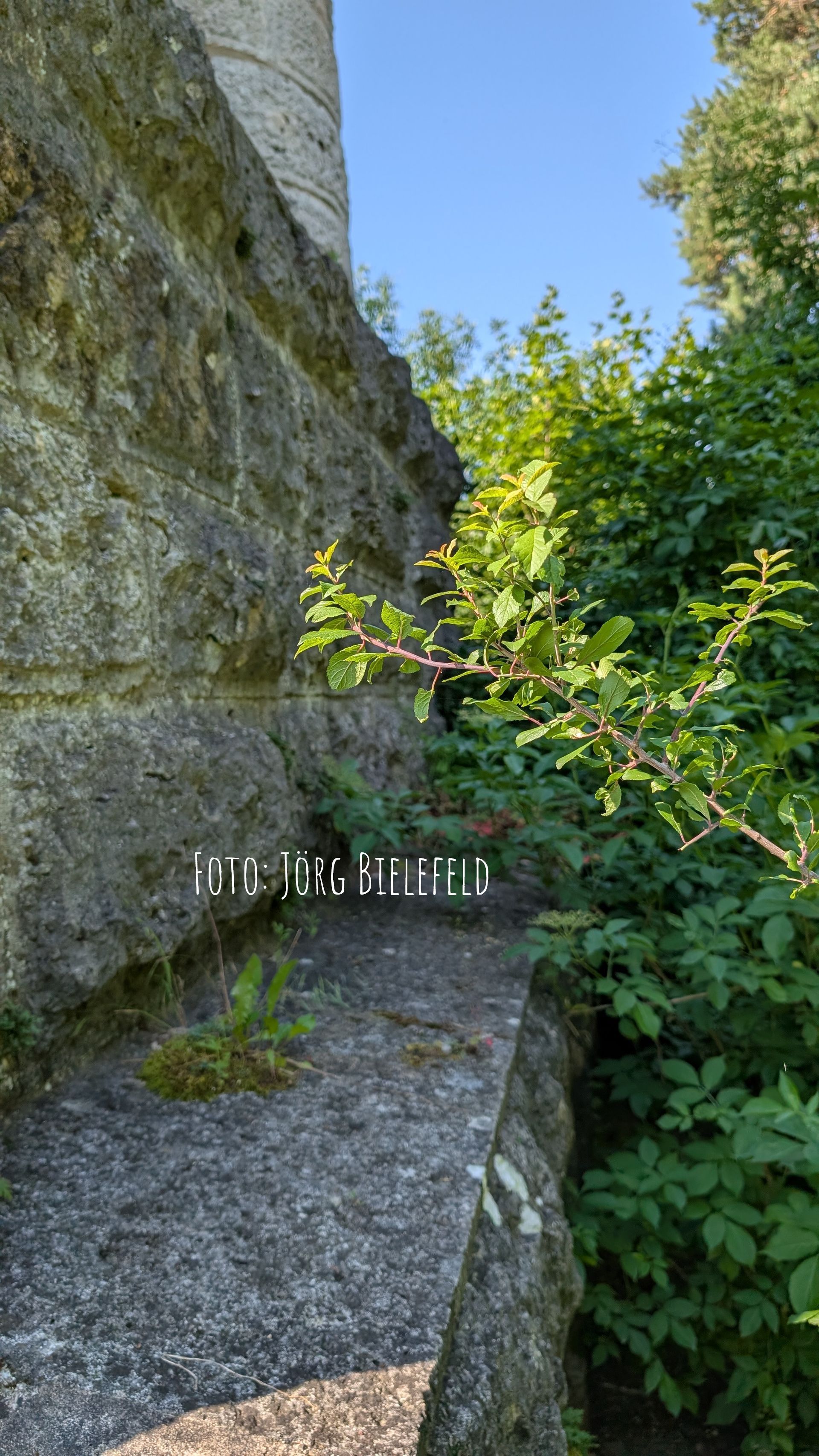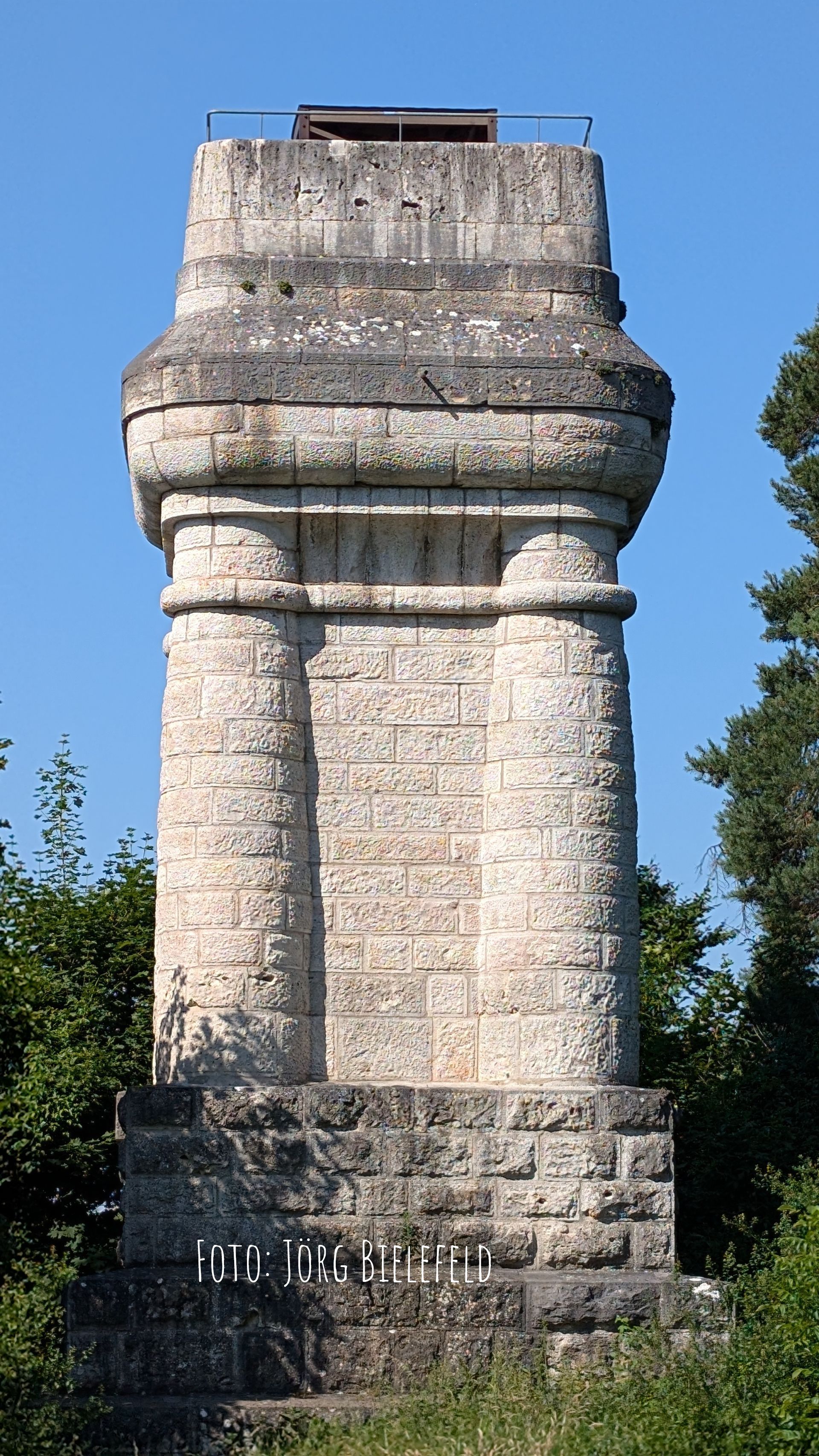 Foto zugewachsener Bismarckturm Weißenburg Juni 2025