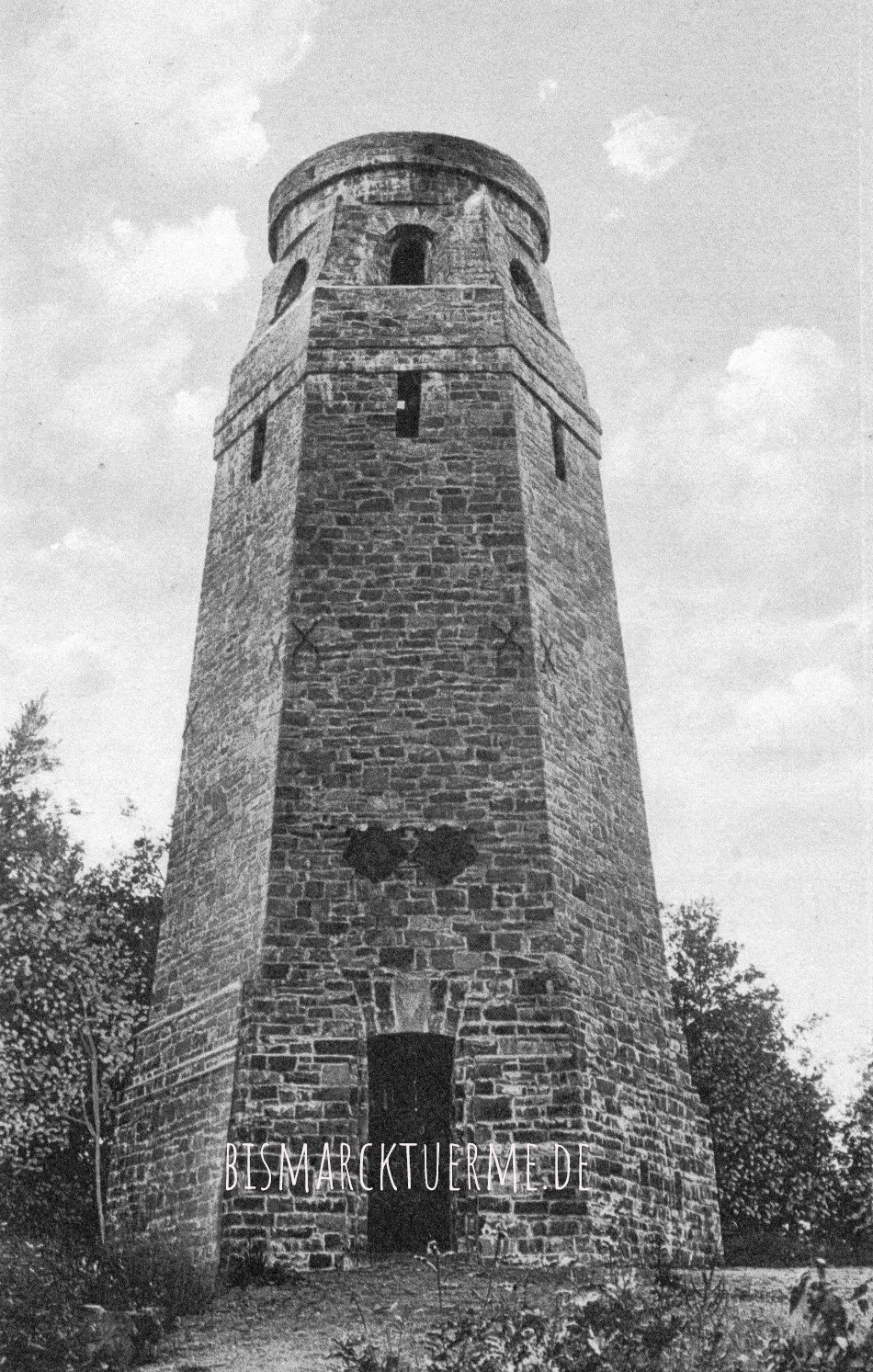 Der 0,62 m hohe Schlussstein des Turmes mit eingehauenem Bismarck-Wappen wurde direkt über dem Eingang in den Bereich der dreifachen Stufung eingelassen.