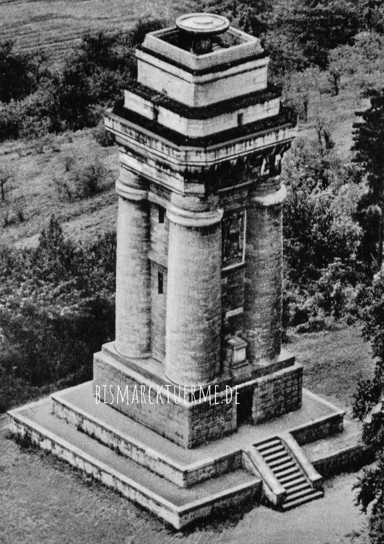 Dem Bauantrag der Bismarcksäule wurde am 17.04.1900 vom Herzogl. Kreis-Bau-Inspektor Weidlich unter mehreren Auflagen (Träger der Treppenstufen sind vorschriftsmäßig mit dem Mauerwerk zu verbinden, Treppenstufen sind mit Zemenmörtel zu vermauern und Anbringung eines eisernen Treppengeländers mit einer Höhe von 1 m) genehmigt.