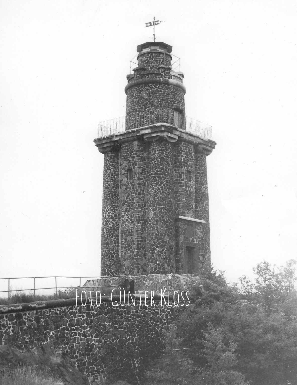 Die Basis des ursprünglich 18 m (heute: 19,40 m) hohen Aussichtsturmes mit Befeuerungsmöglichkeit mit quadratischem Grundriss ist ein 1,93 m hoher pyramidenstumpfartiger Sockel.