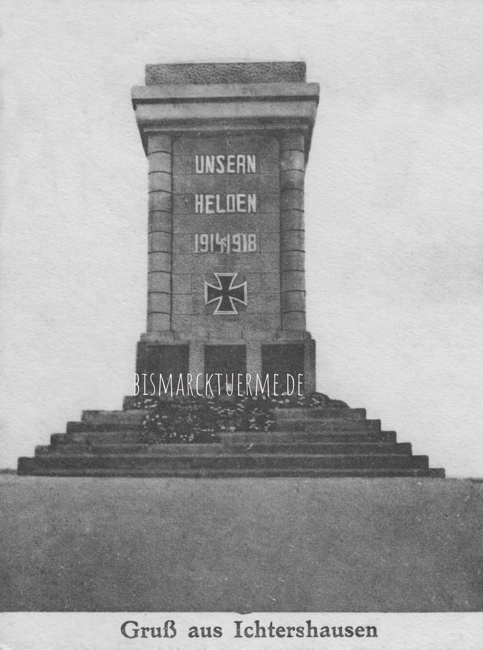 Turmartiges deutsches Kriegerdenkmal in Alehnung an die Form des Bismarckturm-Entwurfs "Götterdämmerung" mit breiten 3/4-Säulen in einfacher, gedrungener Ausführung.