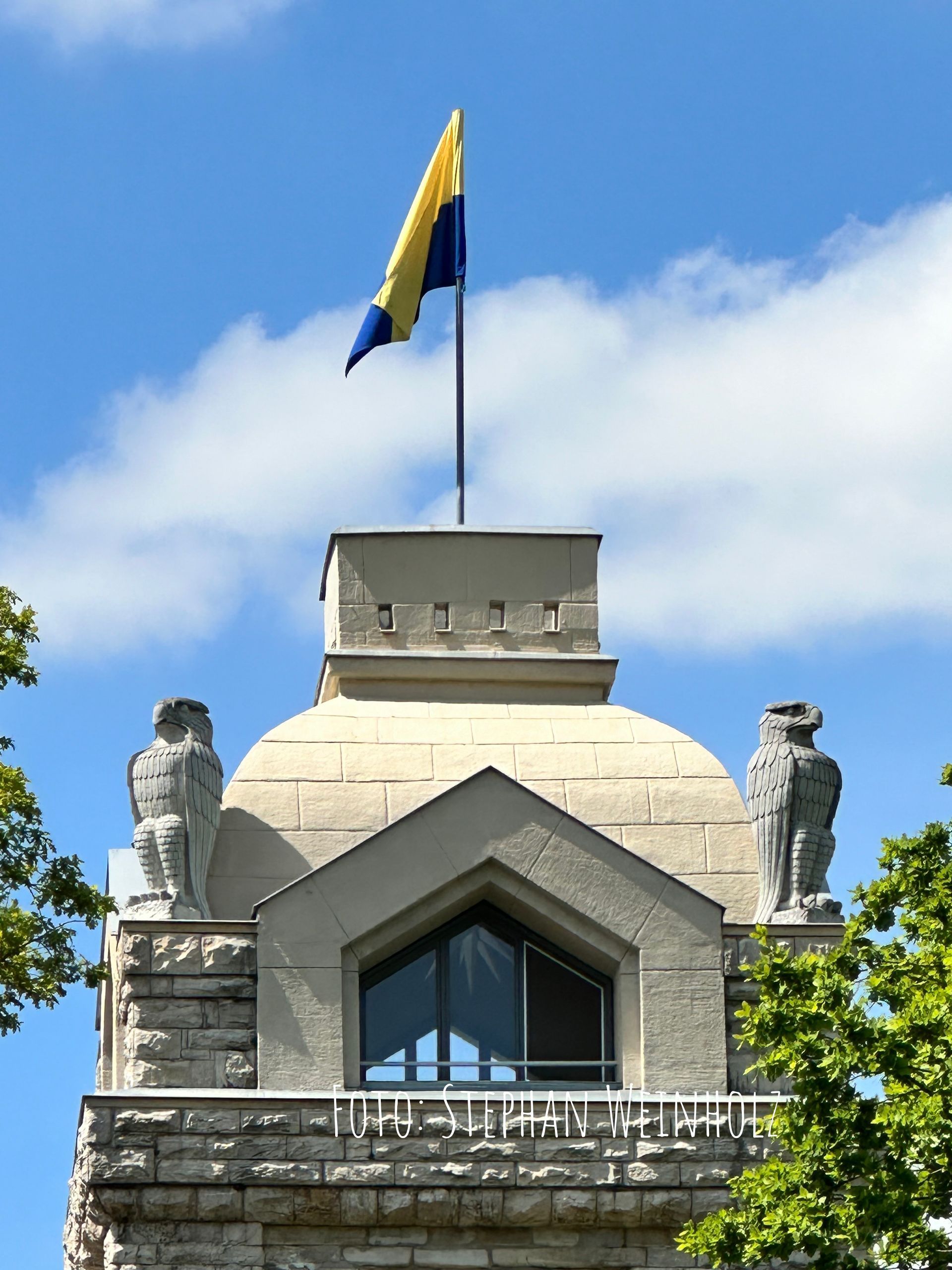 Foto Turmkopf mit Fahne Bismarckturm Weißenfels Mai 2024